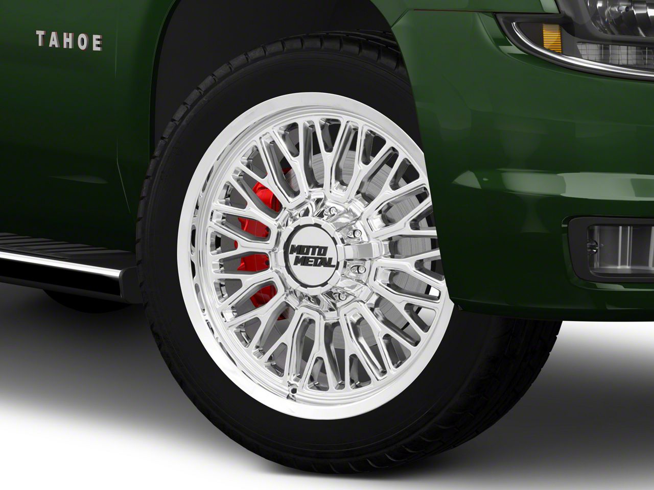 Application. This Moto Metal Stinger Chrome 6-Lug Wheel; 22x12; -44mm Offset, with a backspace of 4.768 Inch, 121.1mm; and bolt pattern of 6 x 139.7mm (6 x 5.5-Inch), is designed to fit the 2015-2020 Tahoe . The precise specifications of the wheel ensure proper alignment and driving stability, perfectly complementing the vehicle's model. Sold individually.