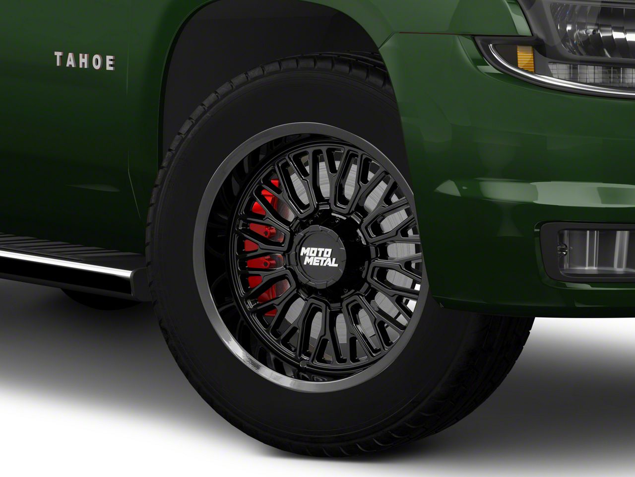 Application. This Moto Metal Stinger Gloss Black 6-Lug Wheel; 20x9; 18mm Offset, with a backspacing of 5.709 Inch, 145.1mm and bolt pattern of 6 x 139.7mm (6 x 5.5-Inch), ensures precise alignment and stable driving. Designed to fit 2015-2020 Tahoe models, this wheel is sold individually.