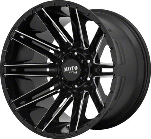 Moto Metal Kraken Gloss Black Milled 6-Lug Wheel; 20x12; -44mm Offset. Enhance your vehicle's look with the Moto Metal Kraken Gloss Black Milled 6-Lug Wheel. This premium wheel adds a touch of elegance and class to your vehicle, complementing its sophisticated aesthetic.
