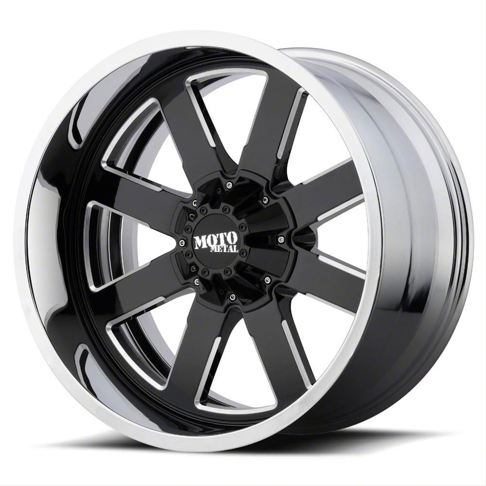 Moto Metal MO200 Gloss Black Milled Center with Chrome Lip 6-Lug Wheel; 20x10; -18mm Offset - Elevate your vehicle's style with this wheel's striking design. Reflecting the Moto Metal's commitment to quality, it promises to add a touch of elegance and a strong character to your ride. Perfect for those seeking to make an impression without saying a word.