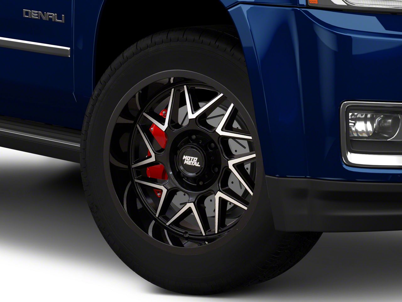 Application. This Moto Metal Turbine Gloss Black with Machined Face 6-Lug Wheel; 20x9, with a backspace of 5.787 Inch, 147mm and a bolt pattern of 6 x 139.7mm (6 x 5.5-Inch), is designed to enhance alignment and driving stability. It's specially designed to fit the 2015-2020 Yukon models, sold individually.