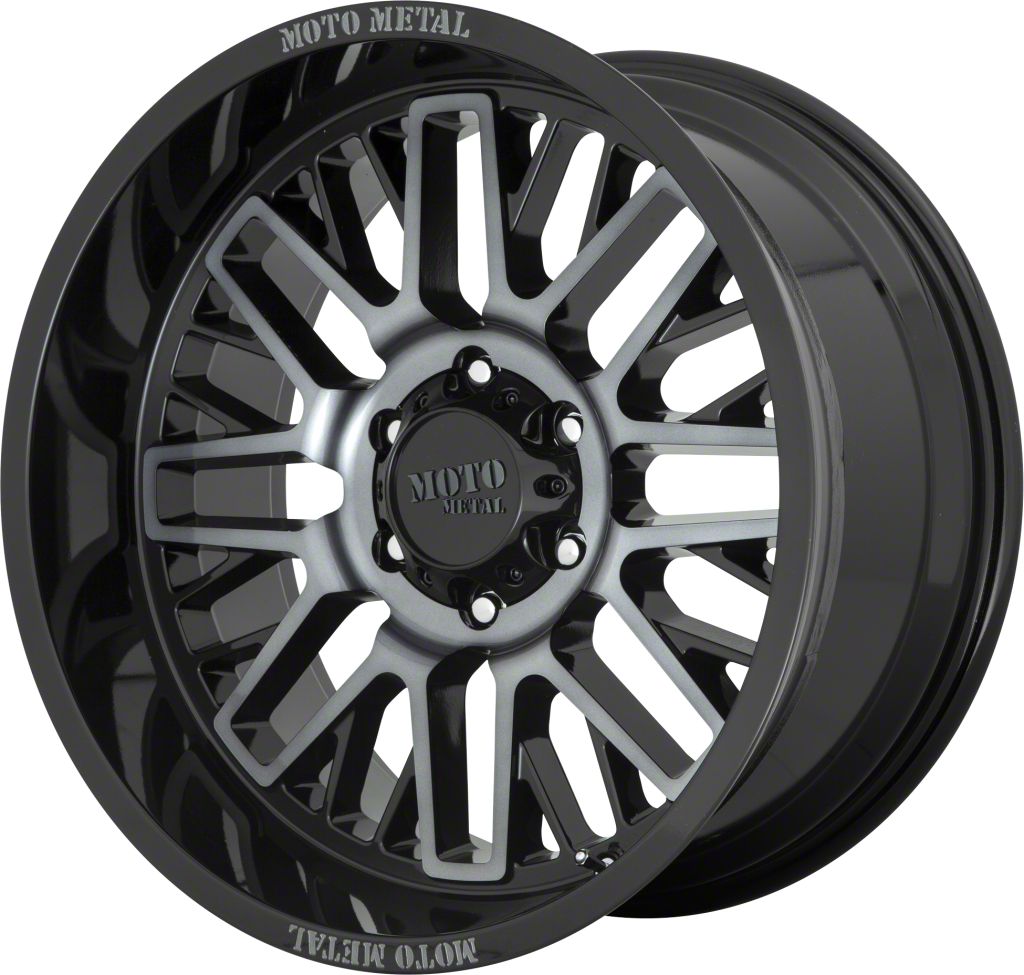 Application. This Moto Metal MO802 Gloss Black Machined with Gray Tint 6-Lug Wheel; 20x10; -18mm Offset, with a backspace of 4.792 Inch, 121.8mm; and bolt pattern of 6 x 139.7mm (6 x 5.5-Inch), ensures precise alignment and unwavering stability. Designed to fit the 2007-2013 Silverado 1500 models, it stands out as a tailored enhancement. Sold individually.