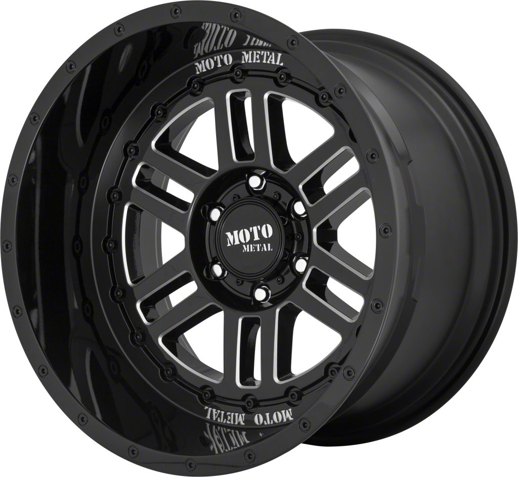 Application. This Moto Metal MO800 Deep Six Gloss Black Milled 6-Lug Wheel; 22x12; -44mm Offset, with a backspace of 4.768 Inch, 121.2mm and bolt pattern of 6 x 139.7mm (6 x 5.5-Inch), is designed to enhance alignment and driving stability, ensuring a perfect fit with the vehicle model. Specifically designed to fit 2014-2018 Silverado 1500 models, this wheel's specifications contribute to a seamless alignment and stable driving experience by ensuring the wheel fits perfectly within the vehicle's wheel well, reducing the risk of rubbing issues and optimizing handling characteristics. Sold individually.