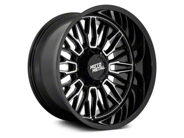 Moto Metal Stinger Gloss Black Machined 8-Lug Wheel; 20x9; 18mm Offset - Experience the sleek elegance of the Moto Metal wheel. Its matte black finish adds a touch of sophistication to your vehicle, enhancing its overall appearance without compromising on durability. Perfect for a variety of vehicle styles, this wheel is a testament to the brand's commitment to quality and aesthetic excellence.