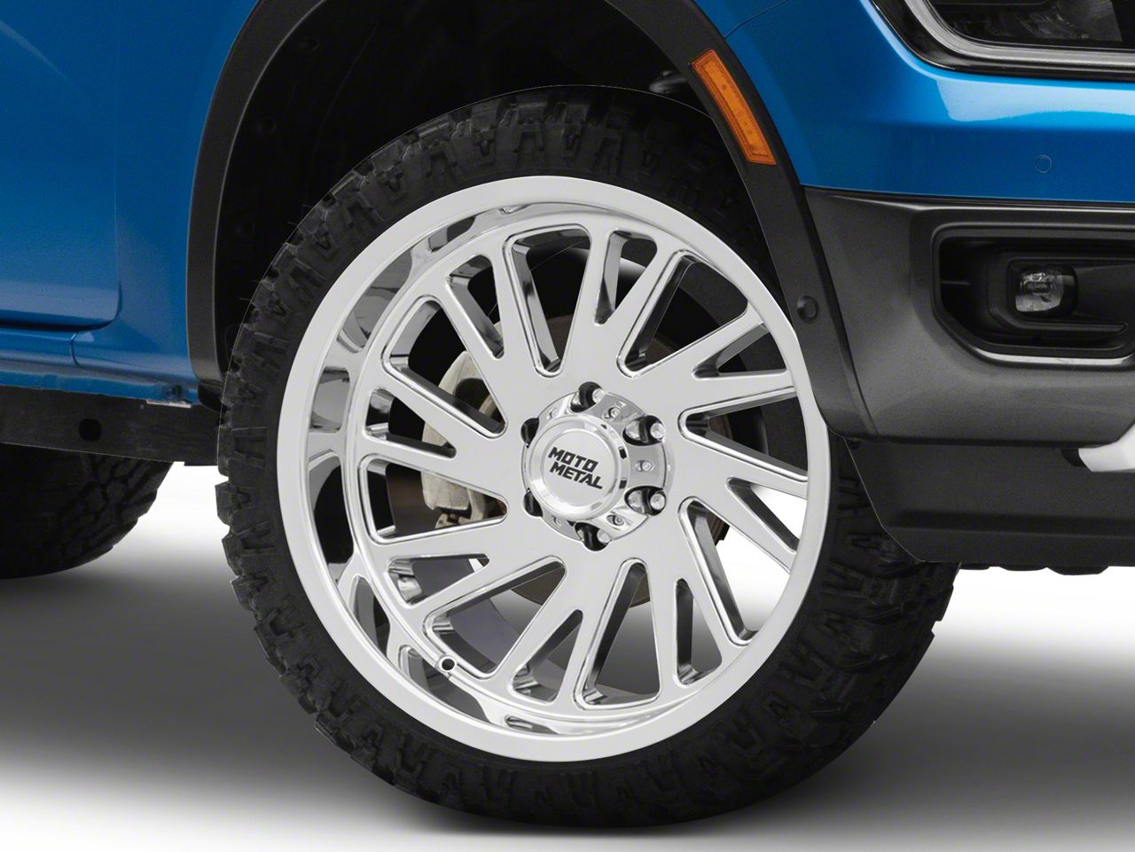 Application. This Moto Metal wheel, Combat Chrome 6-Lug Wheel; 22x10; -18mm Offset, features a backspace of 4.791 Inch, 121.7mm and a bolt pattern of 6 x 139.7mm . These specifications help ensure proper wheel alignment and enhance driving stability. It is designed to fit the 2024-2026 Ranger models. Sold individually.