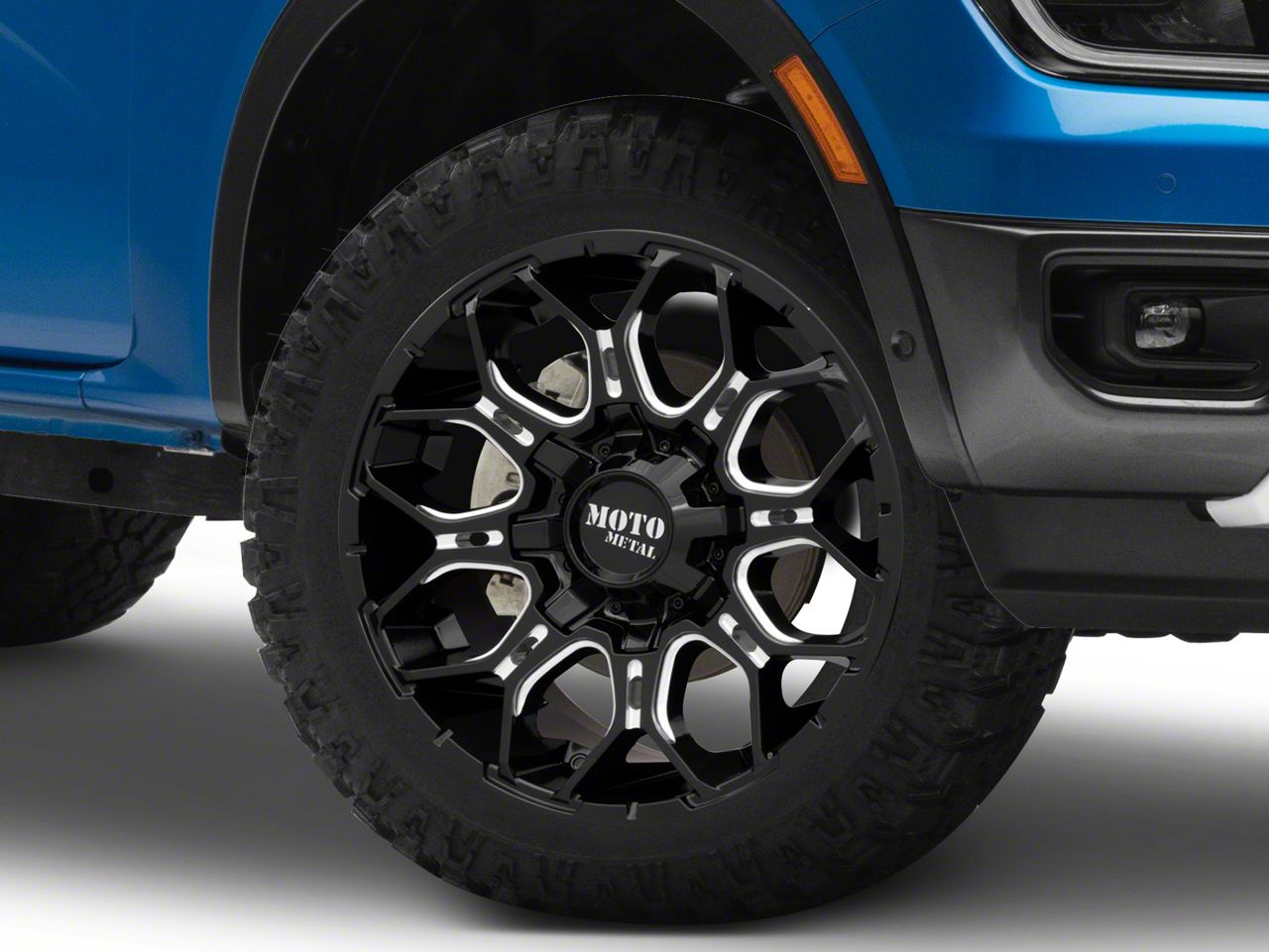 Application. This Moto Metal wheel, MO808 Sniper Gloss Black Milled 6-Lug Wheel; 20x9; 0mm Offset, features a backspace of 5 Inch, 127mm and a bolt pattern of 6 x 139.7mm . These specifications help ensure proper wheel alignment and enhance driving stability. It is designed to fit the 2024-2026 Ranger models. Sold individually.