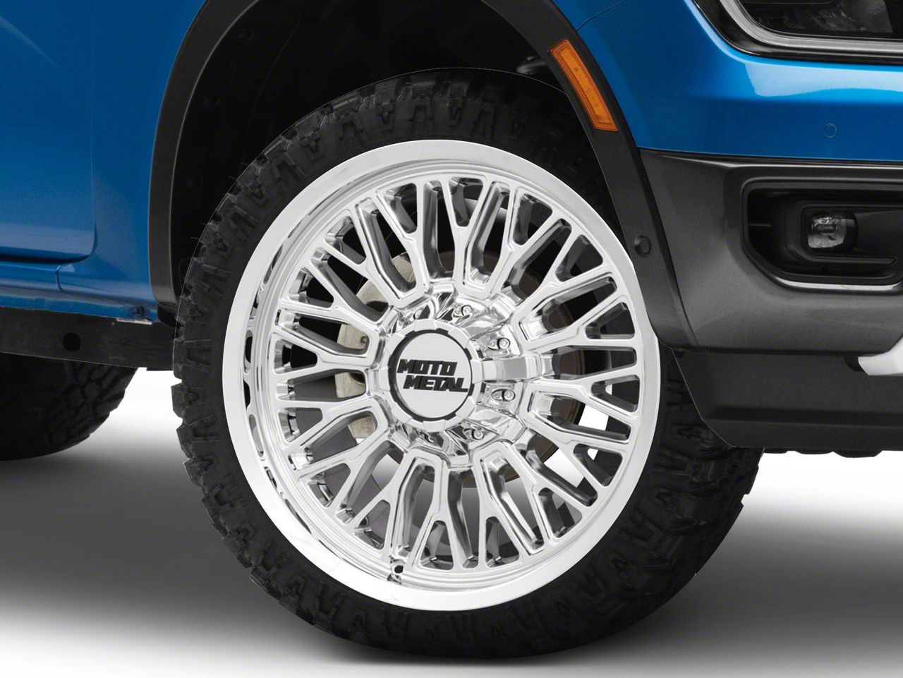 Application. This Moto Metal wheel, Stinger Chrome 6-Lug Wheel; 22x12; -44mm Offset, features a backspace of 4.768 Inch, 121.1mm and a bolt pattern of 6 x 139.7mm . These specifications help ensure proper wheel alignment and enhance driving stability. It is designed to fit the 2024-2026 Ranger models. Sold individually.