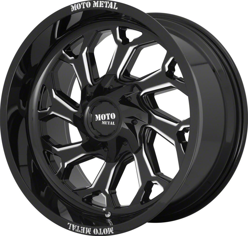 This 20x10 Moto Metal MO999 Gloss Black Milled 5-Lug Wheel is completed in a high-quality gloss black finish with steel milled accents that will be the envy of everyone. For added protection and looks, there is a durable clear coat that can handle the rigors of daily driving.
