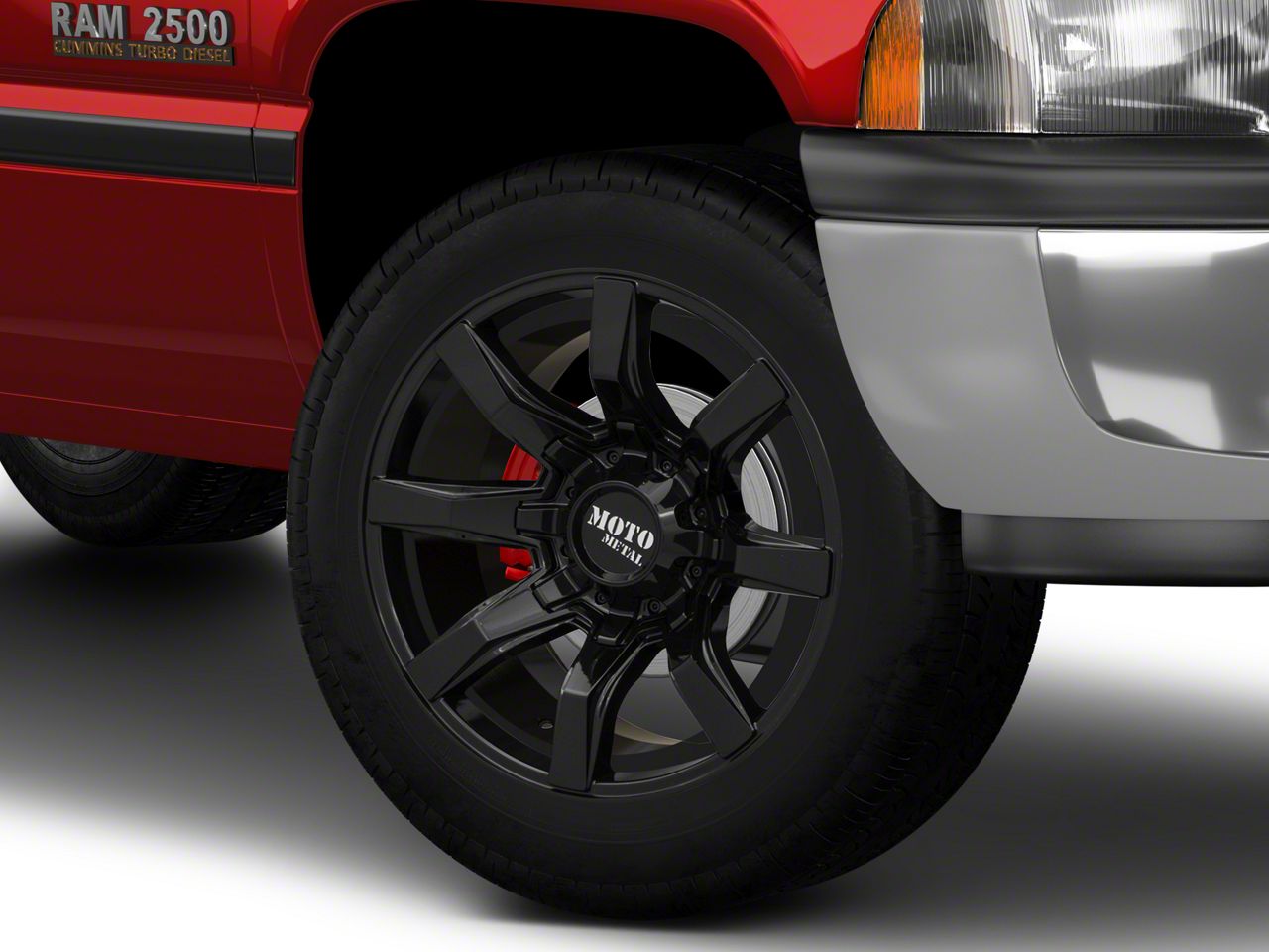 Application. This Moto Metal Spider Gloss Black 8-Lug Wheel; 20x9; 0mm Offset, with a backspacing of 5 Inch, 127mm and bolt pattern of 8 x 165.1mm (8 x 6.5-Inch), is designed to fit 1994-2002 RAM 2500 models. Sold individually.