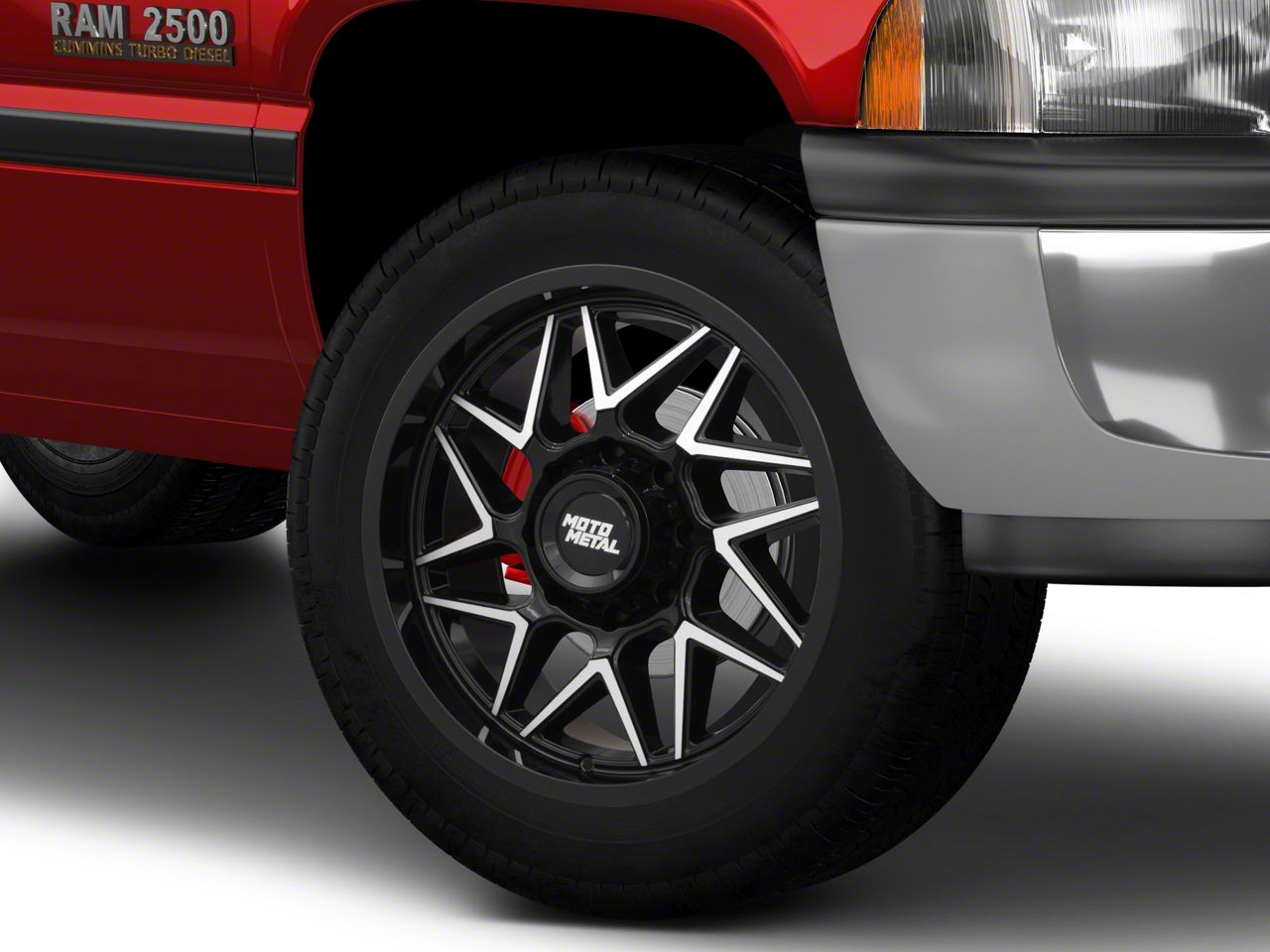 Application. This Moto Metal Turbine Gloss Black with Machined Face 8-Lug Wheel; 20x10; -2018mm Offset, with a backspacing of 4.791 Inch, 121.7mm and bolt pattern of 8 x 165.1mm (8 x 6.5-Inch), is designed to fit 1994-2002 RAM 2500 models. Sold individually.
