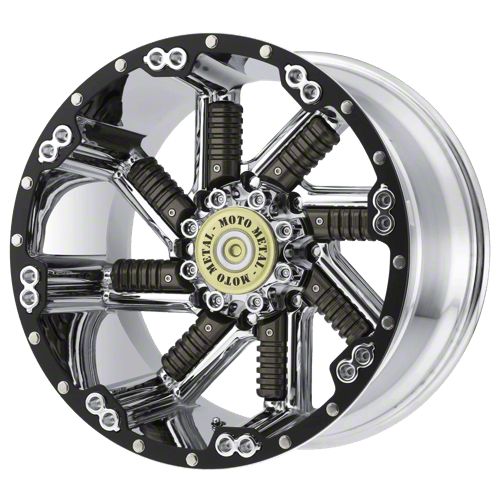 Moto Metal Buckshot Chrome with Gunmetal Inserts 8-Lug Wheel; 20x10; -24mm Offset This Moto Metal Buckshot Chrome with Gunmetal Inserts 8-Lug Wheel; 20x10; -24mm Offset brings a sleek and modern touch to your vehicle with its striking design. Its refined finish and bold styling make it an excellent choice for those looking to enhance their car’s visual appeal. Whether you're aiming for a sporty look or a more aggressive stance, this wheel stands out as a premium addition. Perfect for drivers who appreciate a stylish upgrade.
