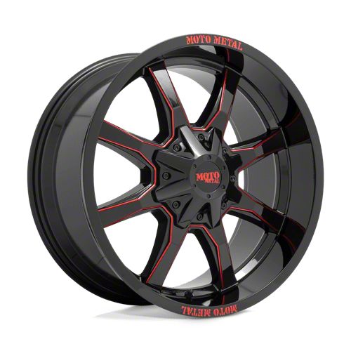 Moto Metal MO970 Gloss Black Milled with Red Tint and Moto Metal On Lip 8-Lug Wheel; 20x9; 0mm Offset This Moto Metal MO970 Gloss Black Milled with Red Tint and Moto Metal On Lip 8-Lug Wheel; 20x9; 0mm Offset brings a sleek and modern touch to your vehicle with its striking design. Its refined finish and bold styling make it an excellent choice for those looking to enhance their car’s visual appeal. Whether you're aiming for a sporty look or a more aggressive stance, this wheel stands out as a premium addition. Perfect for drivers who appreciate a stylish upgrade.
