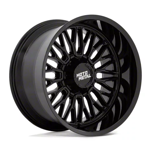 This 20x10 Moto Metal Stinger Gloss Black 8-Lug Wheel is completed in a high-quality gloss black finish that will be the envy of everyone. For added strength and aesthetics, there is a durable clear coat that withstands the rigors of daily driving.