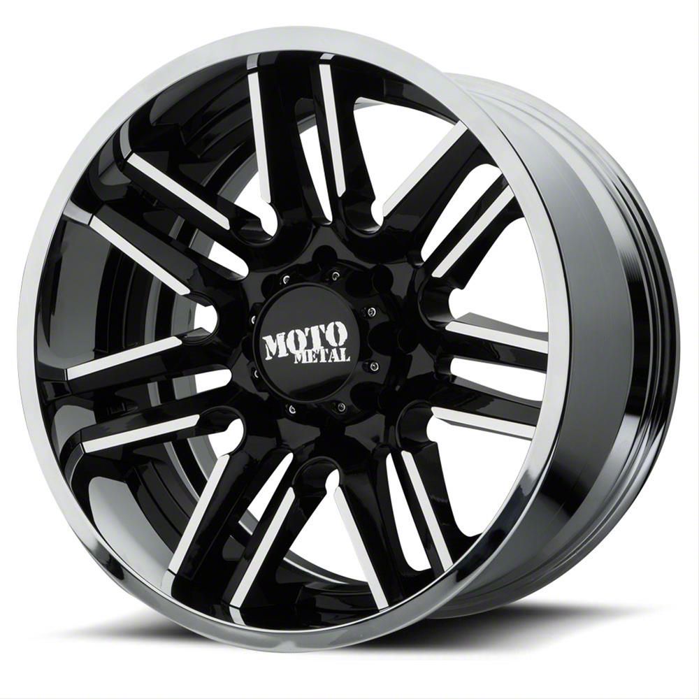 Moto Metal MO202 Gloss Black Machined Center with Chrome Lip 6-Lug Wheel; 20x12; -44mm Offset exudes sophistication with its finish, offering a sleek and modern appeal to any vehicle it adorns. The design is meticulously crafted to enhance the aesthetic of your vehicle, giving it a distinctive and upscale look. Perfect for those seeking to elevate their vehicle's style, this wheel blends seamlessly with both contemporary and classic vehicle designs, making it a versatile choice for a wide range of vehicles. Its robust construction ensures durability, making it a reliable choice for drivers who value both style and quality.