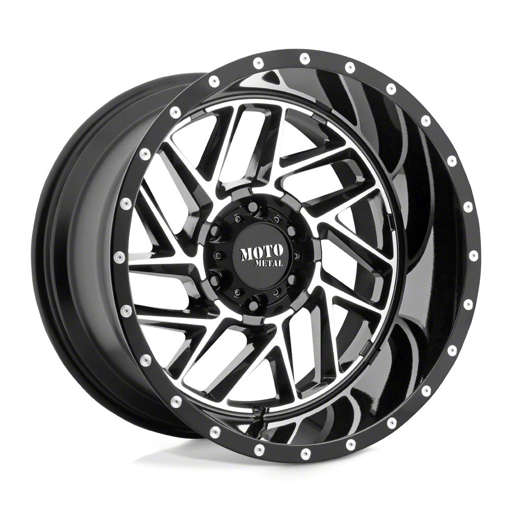 The 20x9 Moto Metal Breakout Gloss Black Machined 6-Lug Wheel is completed in a high-quality gloss black finish with machined accents for an aggressive appearance that will turn heads. There is a durable clear coat that withstands the rigors of daily driving.