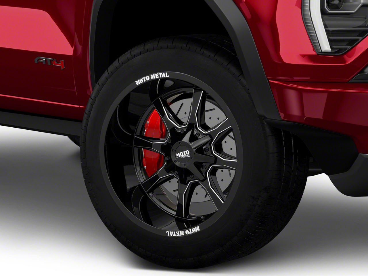 Application. This Moto Metal MO970 Gloss Black with Milled Spoke 6-Lug Wheel; 20x9, with a backspace of 5 Inch, 127mm and a bolt pattern of 6 x 139.7mm (6 x 5.5-Inch), is designed to enhance alignment and driving stability. It's specially designed to fit the 2023-2026 Canyon models, sold individually.