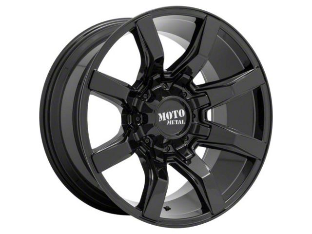 Moto Metal Spider Gloss Black 6-Lug Wheel; 20x10; -18mm Offset. The Moto Metal Spider Gloss Black 6-Lug Wheel offers a striking balance of style and refinement. Its unique design accentuates the vehicle's aesthetic, while the premium construction underscores its robust nature. This wheel is a perfect choice for those seeking both elegance and a strong visual statement.
