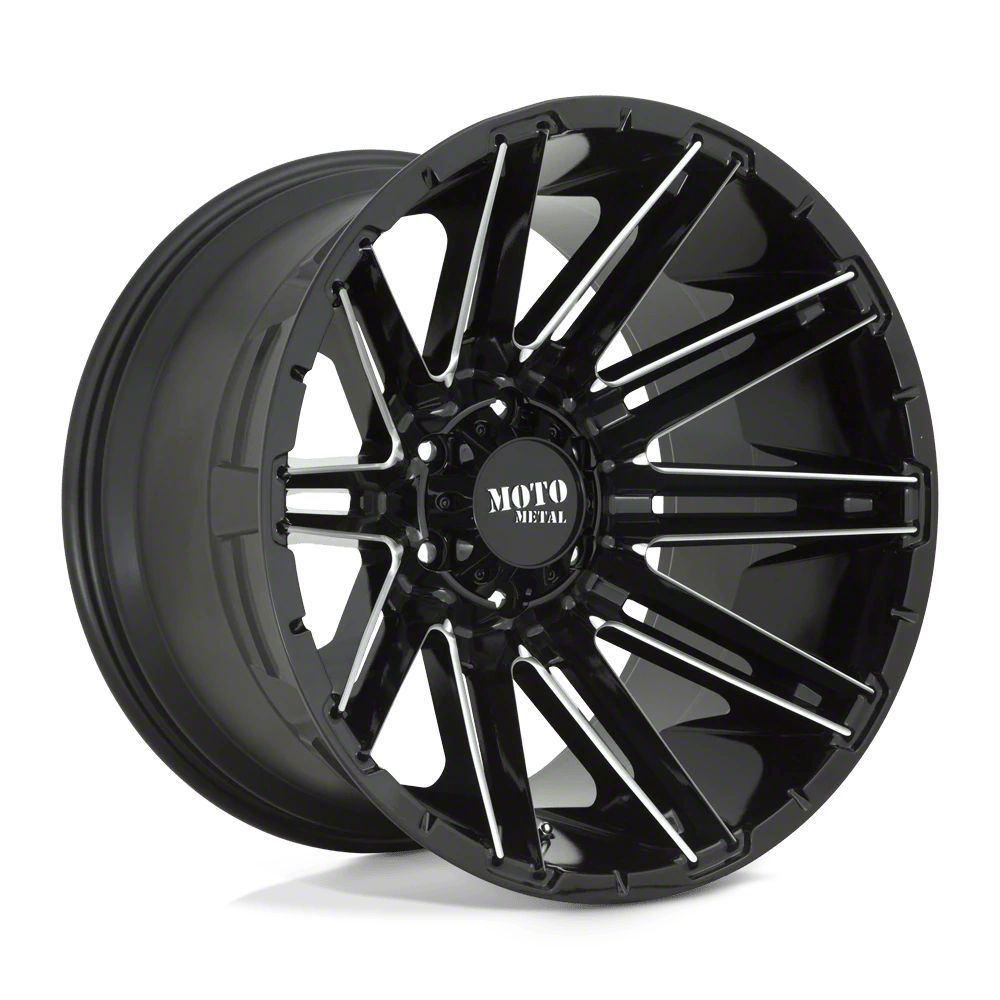 Moto Metal Kraken Gloss Black Milled 5-Lug Wheel; 22x10; -18mm Offset The Moto Metal Kraken Gloss Black Milled 5-Lug Wheel combines a sleek, sophisticated design with premium construction that enhances the visual appeal and complements a wide range of vehicle styles. This wheel is perfect for those seeking to make a bold statement while maintaining elegance and robustness.