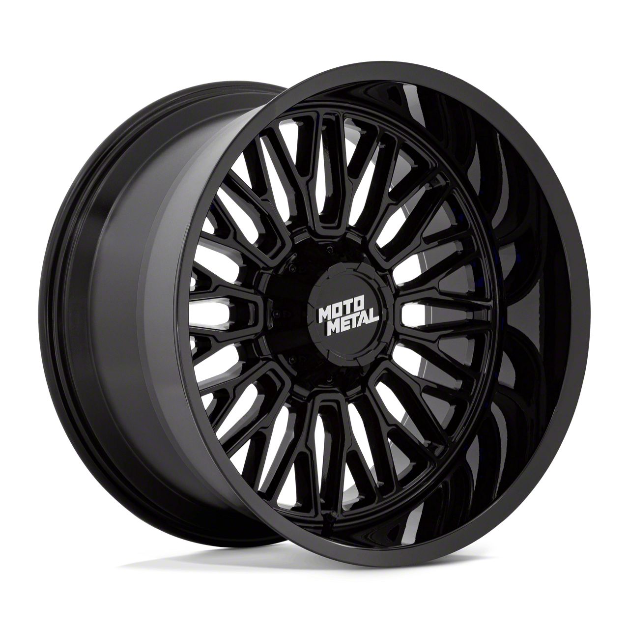 Moto Metal Stinger Gloss Black 5-Lug Wheel; 22x12; -44mm Offset The Moto Metal Stinger Gloss Black 5-Lug Wheel combines a sleek, sophisticated design with premium construction that enhances the visual appeal and complements a wide range of vehicle styles. This wheel is perfect for those seeking to make a bold statement while maintaining elegance and robustness.