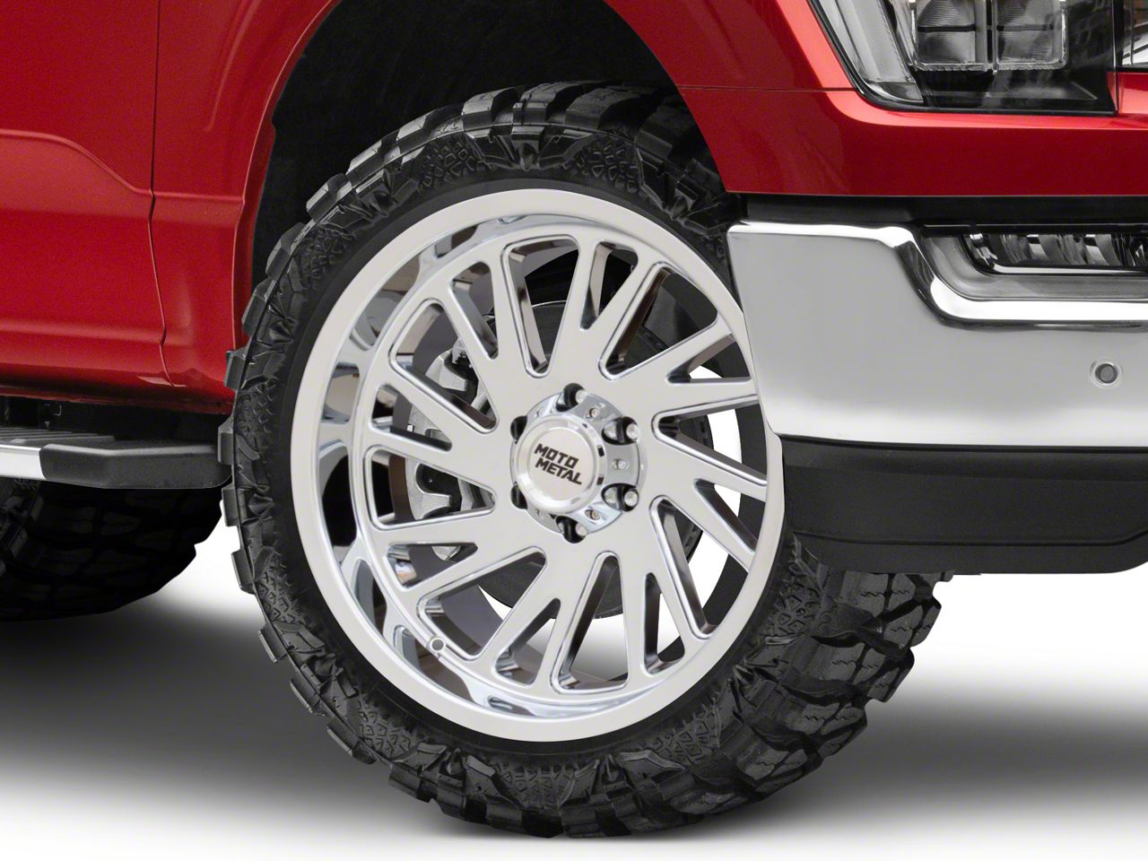 Application. This Moto Metal Combat Chrome 6-Lug Wheel; 22x12; -44mm Offset, with a backspace of 4.768 Inch, 121.1mm and bolt pattern of 6 x 135mm (6 x 5.31-Inch), is designed to provide not only a striking visual appeal but also to contribute significantly to the alignment and driving stability of the vehicle. Its specifications ensure a precise fit with the vehicle model, enhancing the overall driving experience. Built to fit the 2021-2026 F-150, this wheel is sold individually.