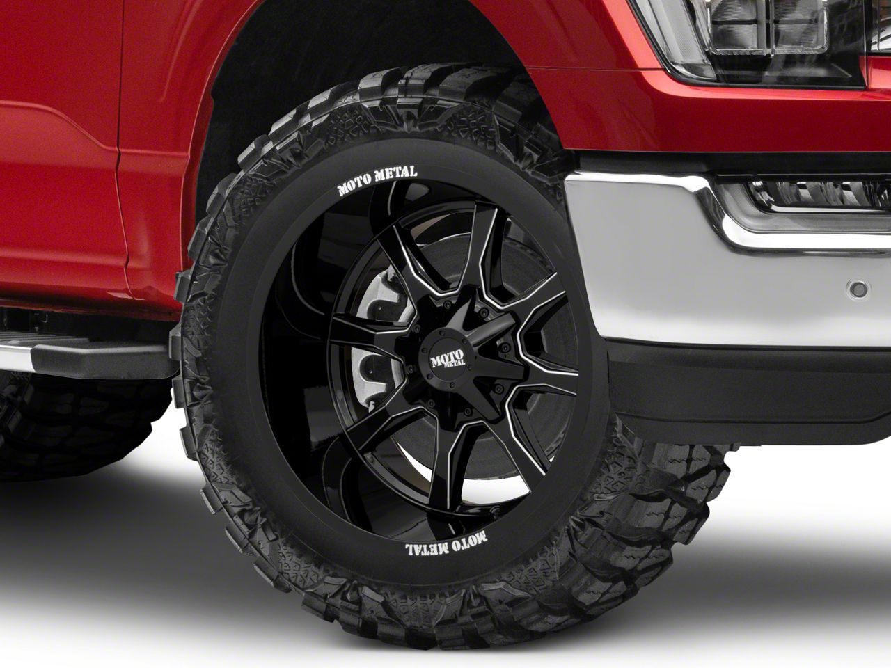 Application. This Moto Metal MO970 Gloss Black with Milled Spoke 6-Lug Wheel; 20x9; 0mm Offset, with a backspace of 5 Inch, 127mm and bolt pattern of 6 x 135mm (6 x 5.31-Inch), ensures proper alignment and stability. It's designed to fit the 2021-2026 F-150 models, enhancing both the look and the overall driving experience. Sold individually.