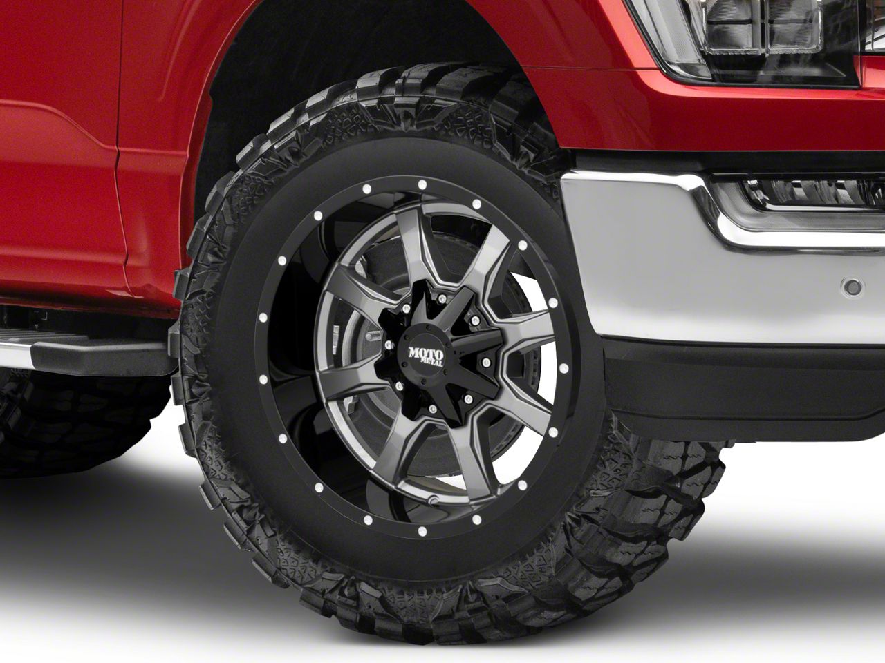 Application. This Moto Metal MO970 Gloss Gray with Gloss Black Lip 6-Lug Wheel; 18x9; 18mm Offset with a backspace of 5.709 Inch, 145.1mm; and bolt pattern of 6 x 135mm (6 x 5.31-Inch), contributes to alignment, driving stability, and ensures a perfect fit with the vehicle model. Designed to fit the 2021-2026 F-150. Sold individually.