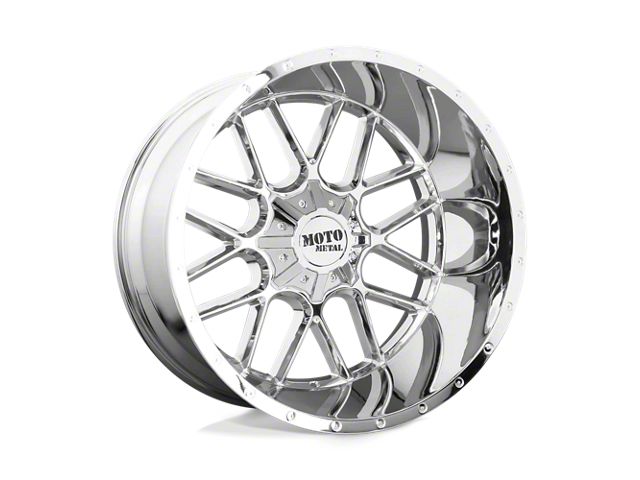 Moto Metal Siege Chrome 8-Lug Wheel; 20x12; -44mm Offset The Moto Metal Siege Chrome 8-Lug Wheel combines a sleek, sophisticated design with premium construction that enhances the visual appeal and complements a wide range of vehicle styles. This wheel is perfect for those seeking to make a bold statement while maintaining elegance and robustness.