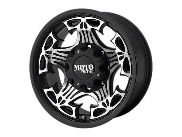 Moto Metal Skull Gloss Black with Machined Face 8-Lug Wheel; 17x9; -12mm Offset The Moto Metal Skull Gloss Black with Machined Face 8-Lug Wheel combines a sleek, sophisticated design with premium construction that enhances the visual appeal and complements a wide range of vehicle styles. This wheel is perfect for those seeking to make a bold statement while maintaining elegance and robustness.