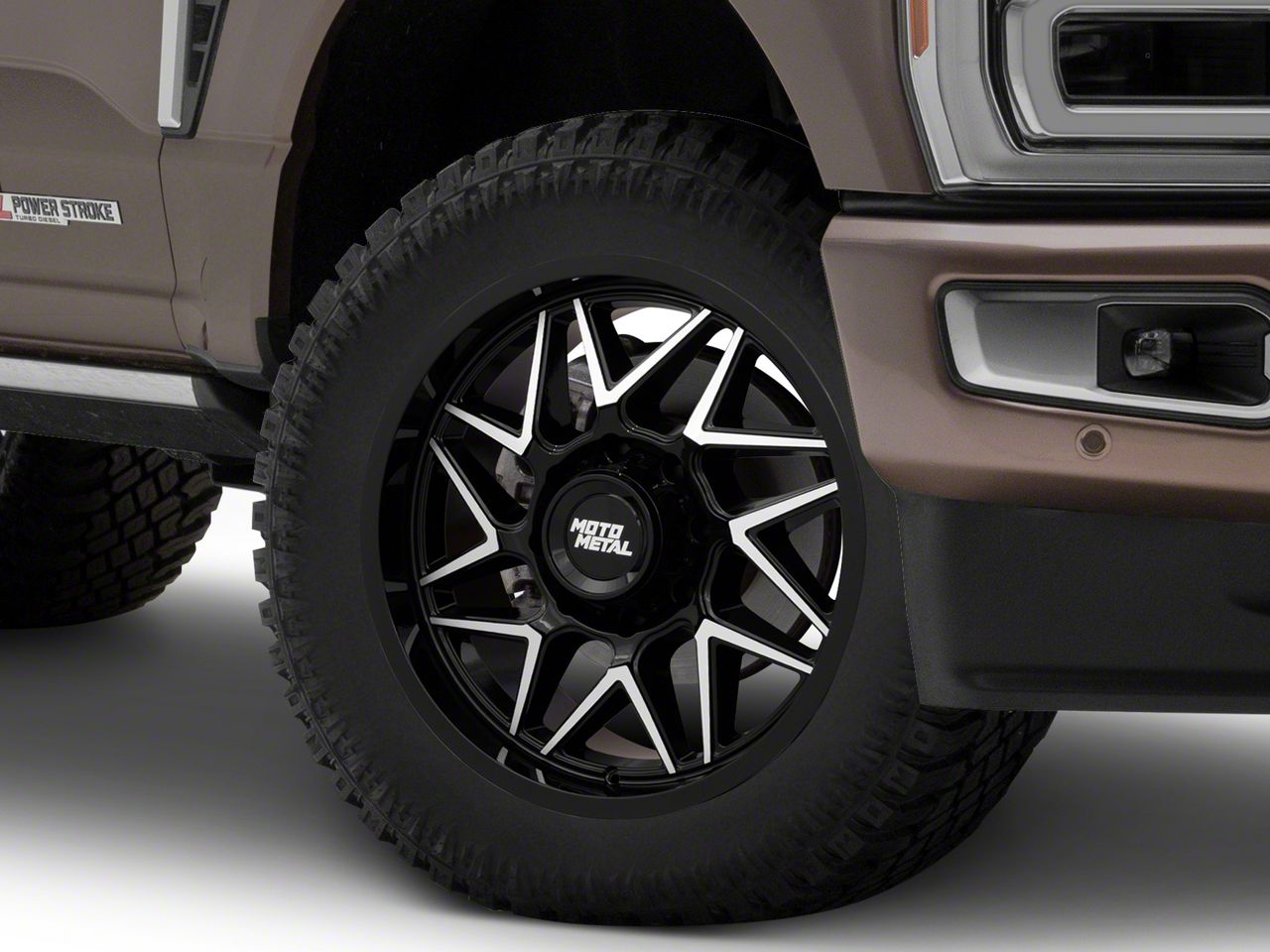 Application. This Moto Metal Turbine Gloss Black with Machined Face 8-Lug Wheel; 20x10; -18mm Offset, with a backspace of 4.791 Inch, 121.7mm and bolt pattern of 8 x 170mm (8 x 6.69-Inch), is designed to enhance alignment and driving stability, ensuring a perfect fit with the vehicle model. Specifically designed to fit 2023-20260 Super Duty models, this wheel's specifications contribute to a seamless alignment and stable driving experience by ensuring the wheel fits perfectly within the vehicle's wheel well, reducing the risk of rubbing issues and optimizing handling characteristics. Sold individually.