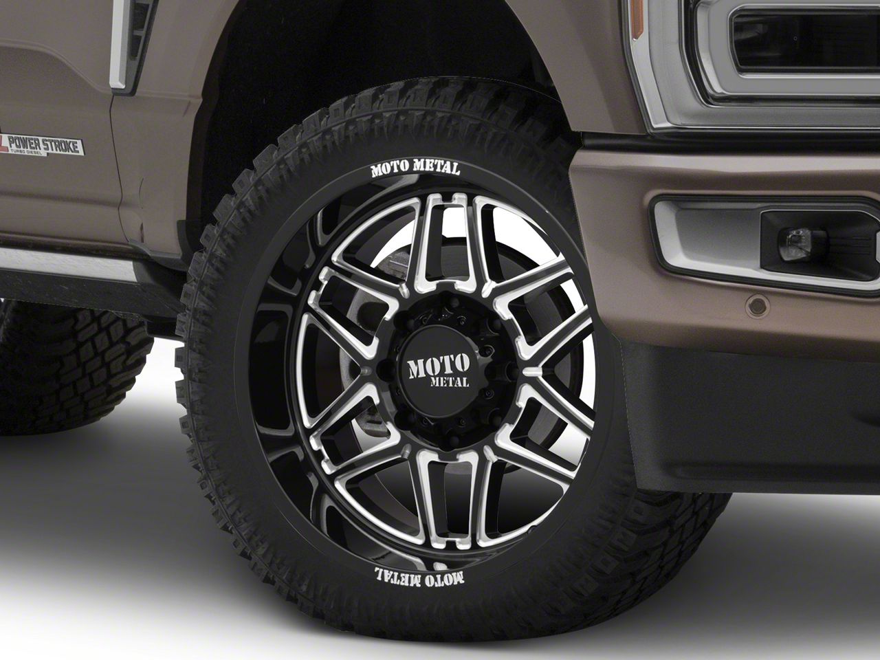 Application. This Moto Metal Folsom Gloss Black Milled 8-Lug Wheel; 22x10; -18mm Offset, with a backspace of 4.791 Inch, 121.7mm and bolt pattern of 8 x 170mm (8 x 6.69-Inch), is designed to provide not only a striking visual appeal but also to contribute significantly to the alignment and driving stability of the vehicle. Its specifications ensure a precise fit with the vehicle model, enhancing the overall driving experience. Built to fit the 2023-2026 F-350 Super Duty SRW, this wheel is sold individually.