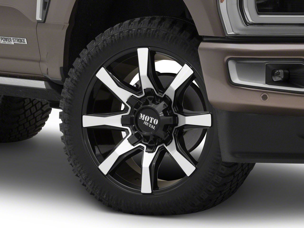 The 22x10 Moto Metal Spider Gloss Black Machined 8-Lug Wheel is completed in a high-quality gloss black finish with machined accents for an aggressive appearance that will turn heads. There is a durable clear coat that withstands the rigors of daily driving.