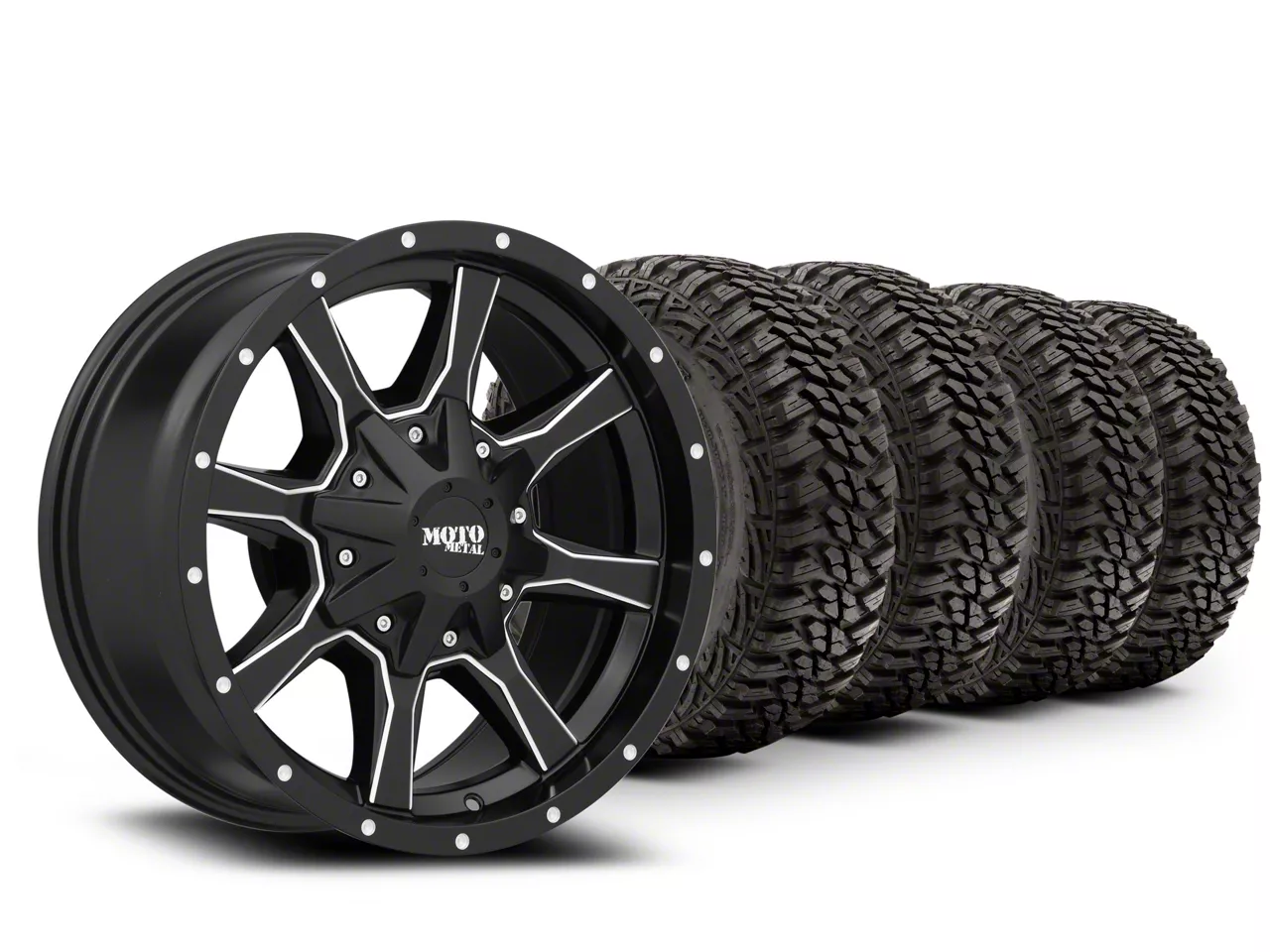 Mounted and Balanced Wheel and Tire Kit. This wheel and tire combo kit features (4) 20x9 Moto Metal MO970 Satin Black Milled 6-Lug Wheels and (4) Kanati Mud-Terrain KU-252 Mud Hog 35x12.50R20 tires that have been put together into an easy to buy kit that arrives to your door already mounted and balanced ready to be installed on your vehicle.