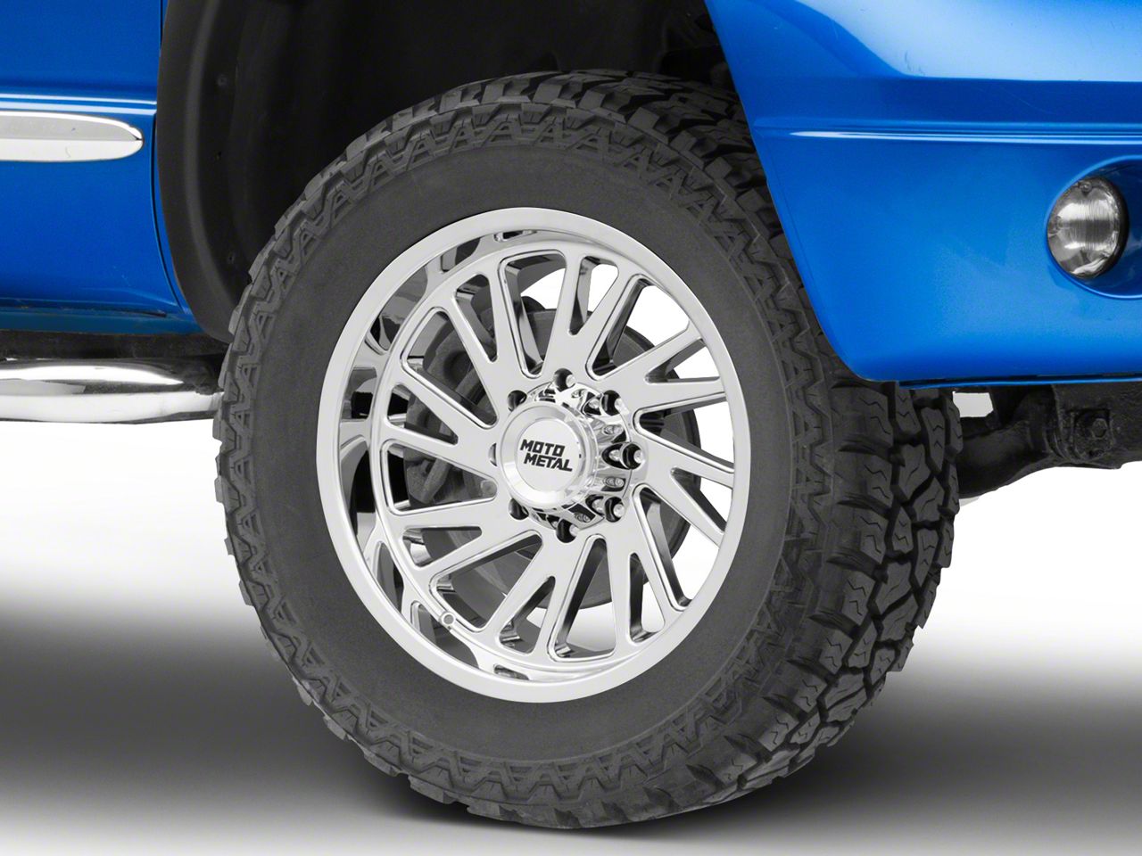 Moto Metal Combat Chrome 8-Lug Wheel; 24x12; -44mm Offset - Enhance your vehicle's style with the Moto Metal wheel. This wheel's distinctive design and finish complement your vehicle's aesthetics, making a bold statement. It's crafted to accentuate the unique character of your car, emphasizing a premium and robust appeal.