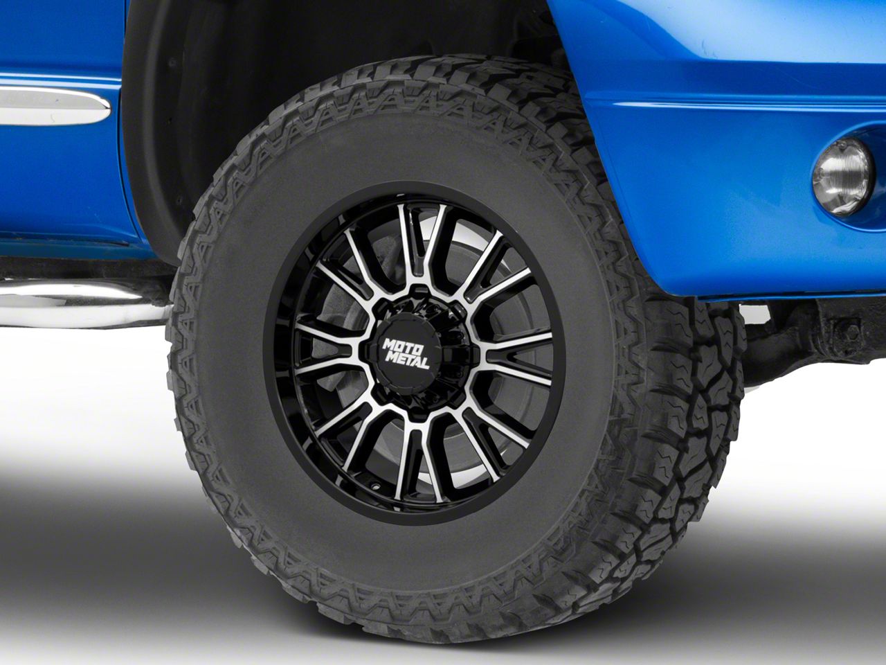 Moto Metal Legacy Gloss Black Machined 8-Lug Wheel; 18x9; 1mm Offset - Enhance your vehicle's style with the Moto Metal wheel. This wheel's distinctive design and finish complement your vehicle's aesthetics, making a bold statement. It's crafted to accentuate the unique character of your car, emphasizing a premium and robust appeal.