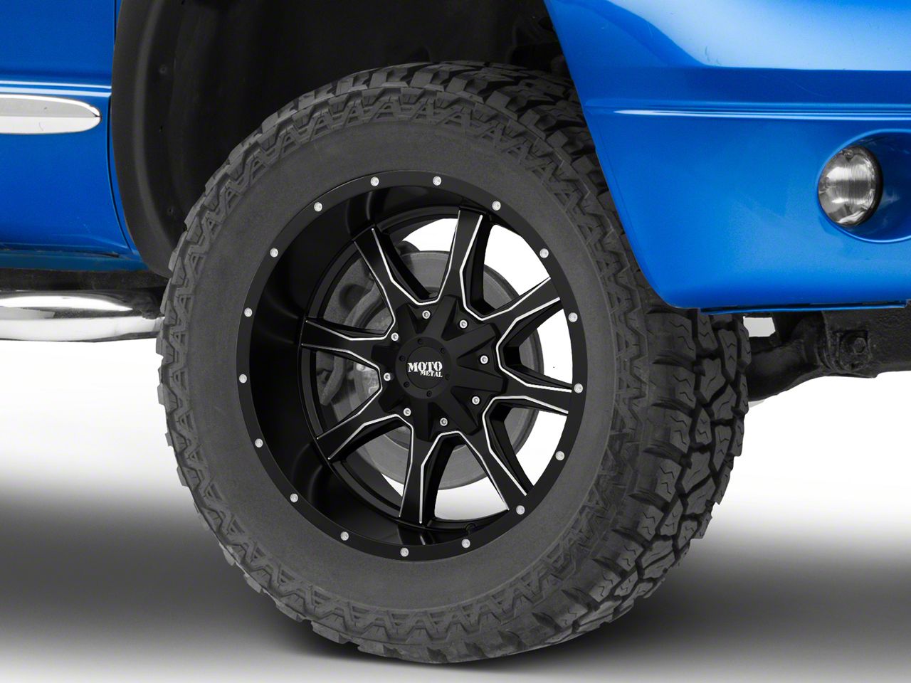 Application. This Moto Metal MO970 Satin Black Milled 5-Lug Wheel; 20x10; -24mm Offset with a backspace of 4.556 Inch, 115.8mm; and bolt pattern of 5 x 139.7mm (5 x 5.5-Inch) contributes to impeccable alignment and driving stability. Designed to fit 2002-2008 RAM 1500, Excluding Mega Cab models, sold individually.