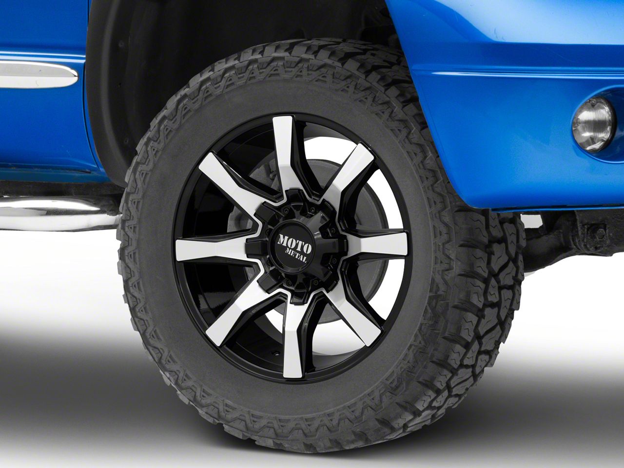 Moto Metal Spider Gloss Black Machined 8-Lug Wheel; 20x9; 18mm Offset: Redefine your vehicle's style with the Moto Metal Spider Gloss Black Machined 8-Lug Wheel. This wheel's elegant design and striking finish embody a blend of sophistication and boldness, perfectly complementing a wide array of vehicle aesthetics. Crafted from high-quality materials, it's a testament to durability and style.
