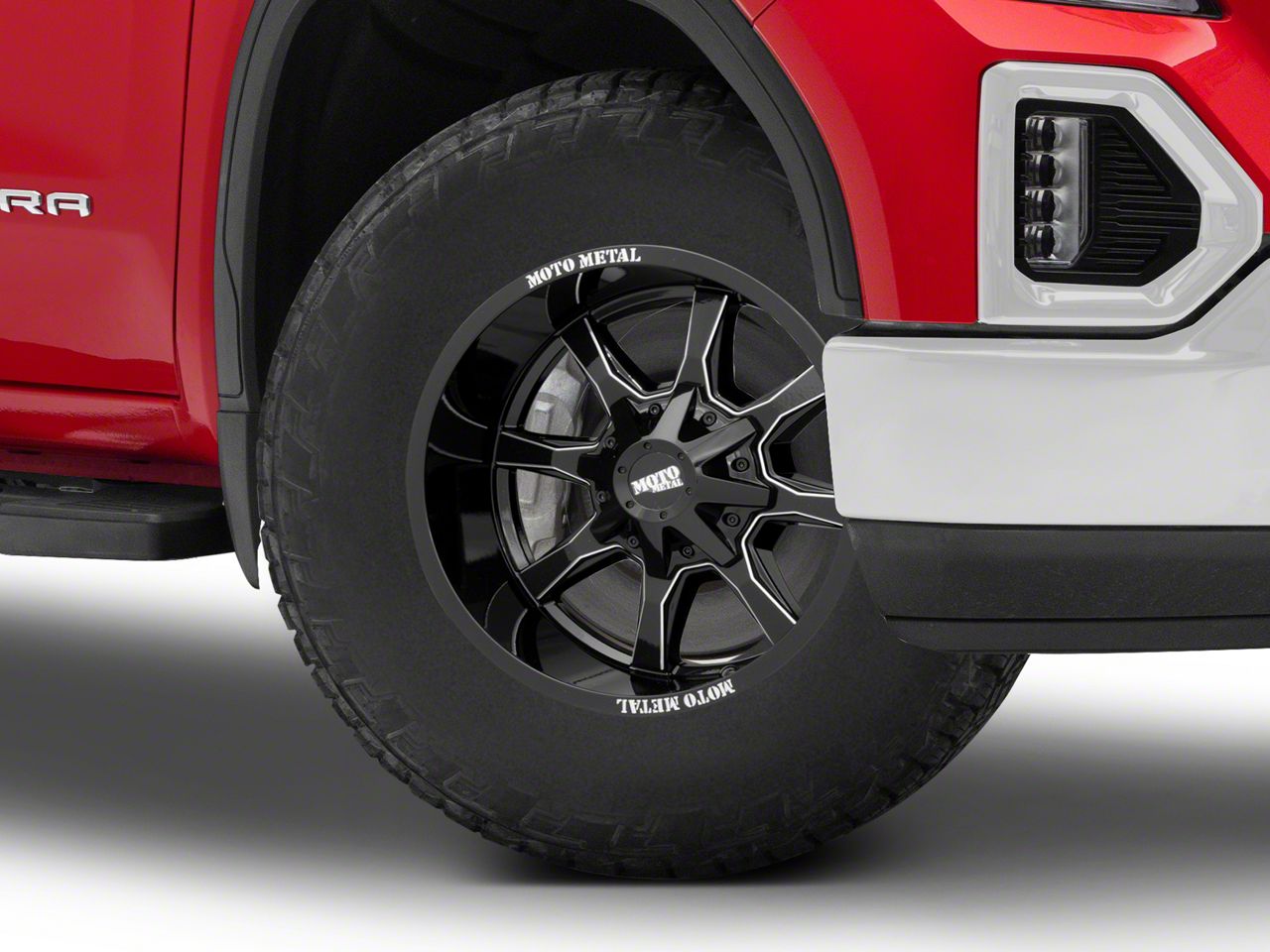 Application. This Moto Metal MO970 Gloss Black Milled 6-Lug Wheel; 18x9; 18mm Offset, with a backspace of 5.709 Inch, 145.1mm and bolt pattern of 6 x 139.7mm (6 x 5.5-Inch), is designed to enhance alignment and driving stability, ensuring a perfect fit with the vehicle model. Specifically designed to fit 2019-2026 Sierra 1500 models, this wheel's specifications contribute to a seamless alignment and stable driving experience by ensuring the wheel fits perfectly within the vehicle's wheel well, reducing the risk of rubbing issues and optimizing handling characteristics. Sold individually.