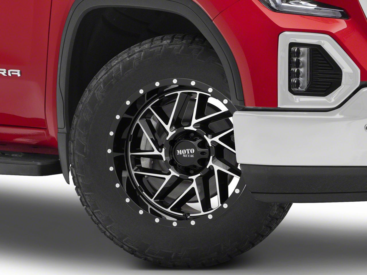 Application. This Moto Metal MO985 Breakout Gloss Black Machined 6-Lug Wheel; 20x9; 18mm Offset with a backspace of 5.709 Inch, 145.1mm; and bolt pattern of 6 x 139.7mm (6 x 5.5-Inch), contributes to alignment, driving stability, and ensures a perfect fit with the vehicle model. Designed to fit the 2019-2026 Sierra 1500. Sold individually.