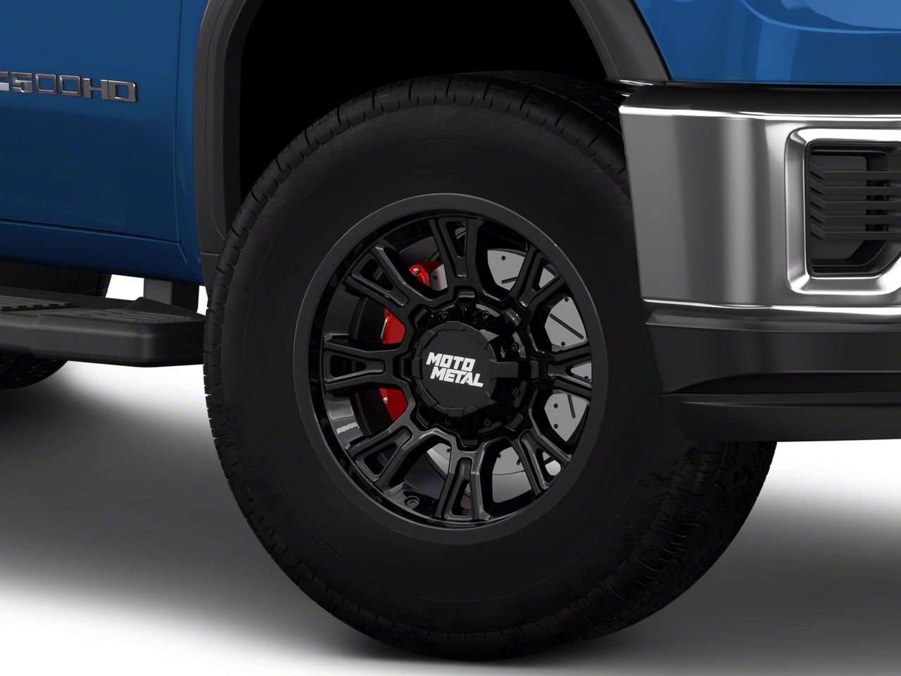 Application. This Moto Metal Legacy Gloss Black 8-Lug Wheel; 18x9; 1mm Offset with a backspace of 5.039 Inch, 128mm and bolt pattern of 8 x 180mm (8 x 7.08661-Inch) ensures impeccable alignment and unmatched driving stability. Specifically designed for 2020-2026 Sierra 2500 HD models, each wheel is sold individually.