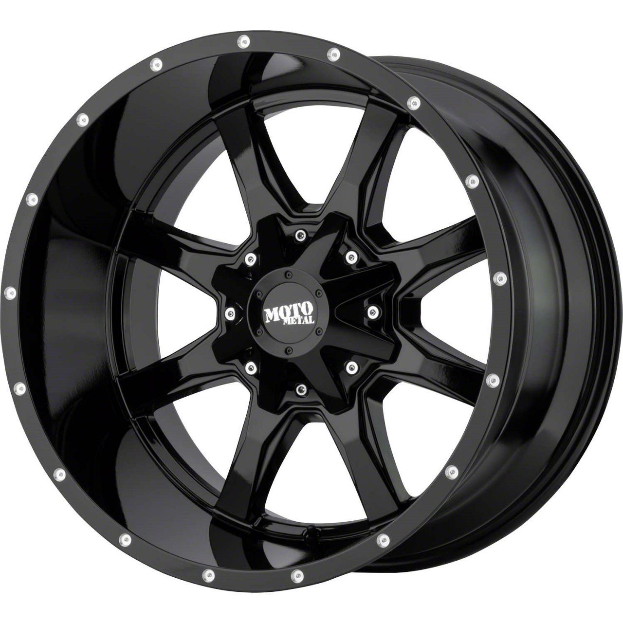 Moto Metal MO970 Gloss Black 8-Lug Wheel; 20x9; 0mm Offset - Enhance your vehicle's style with the Moto Metal wheel. This wheel's distinctive design and finish complement your vehicle's aesthetics, making a bold statement. It's crafted to accentuate the unique character of your car, emphasizing a premium and robust appeal.