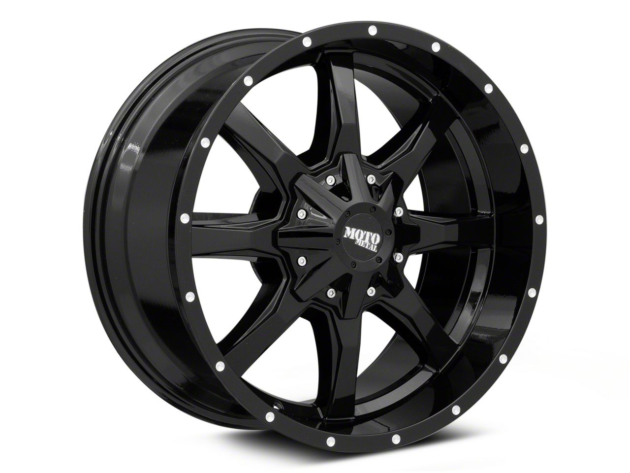 Moto Metal MO970 Gloss Black Milled 8-Lug Wheel; 20x10; 12mm Offset. Enhance your vehicle's look with the Moto Metal MO970 Gloss Black Milled 8-Lug Wheel. This premium wheel adds a touch of elegance and class to your vehicle, complementing its sophisticated aesthetic.