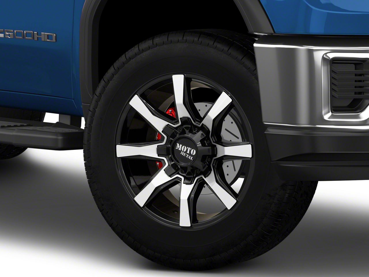 Application. This Moto Metal Spider Gloss Black Machined 8-Lug Wheel; 20x10; -18mm Offset, with a backspace of 4.791 Inch, 121.7mm and bolt pattern of 8 x 180mm (8 x 7.08661-Inch), ensures proper alignment and stability. It's designed to fit the 2020-2026 Sierra 3500 HD SRW models, enhancing both the look and the overall driving experience. Sold individually.