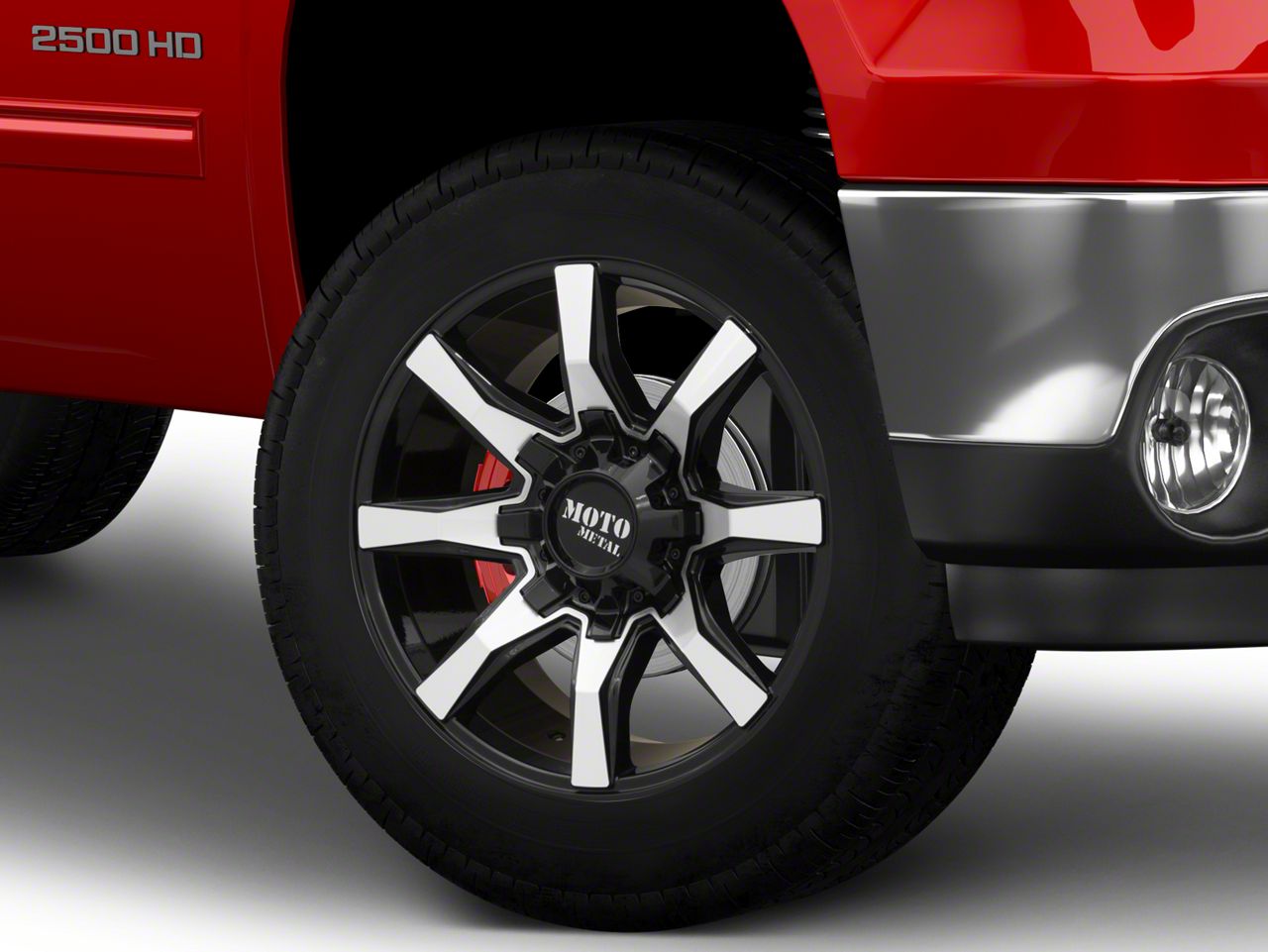 The 20x9 Moto Metal Spider Gloss Black Machined 8-Lug Wheel is completed in a high-quality gloss black finish, with machined accents. Thanks to a durable clear coat, the finish looks amazing and also protects against the rigors of driving.