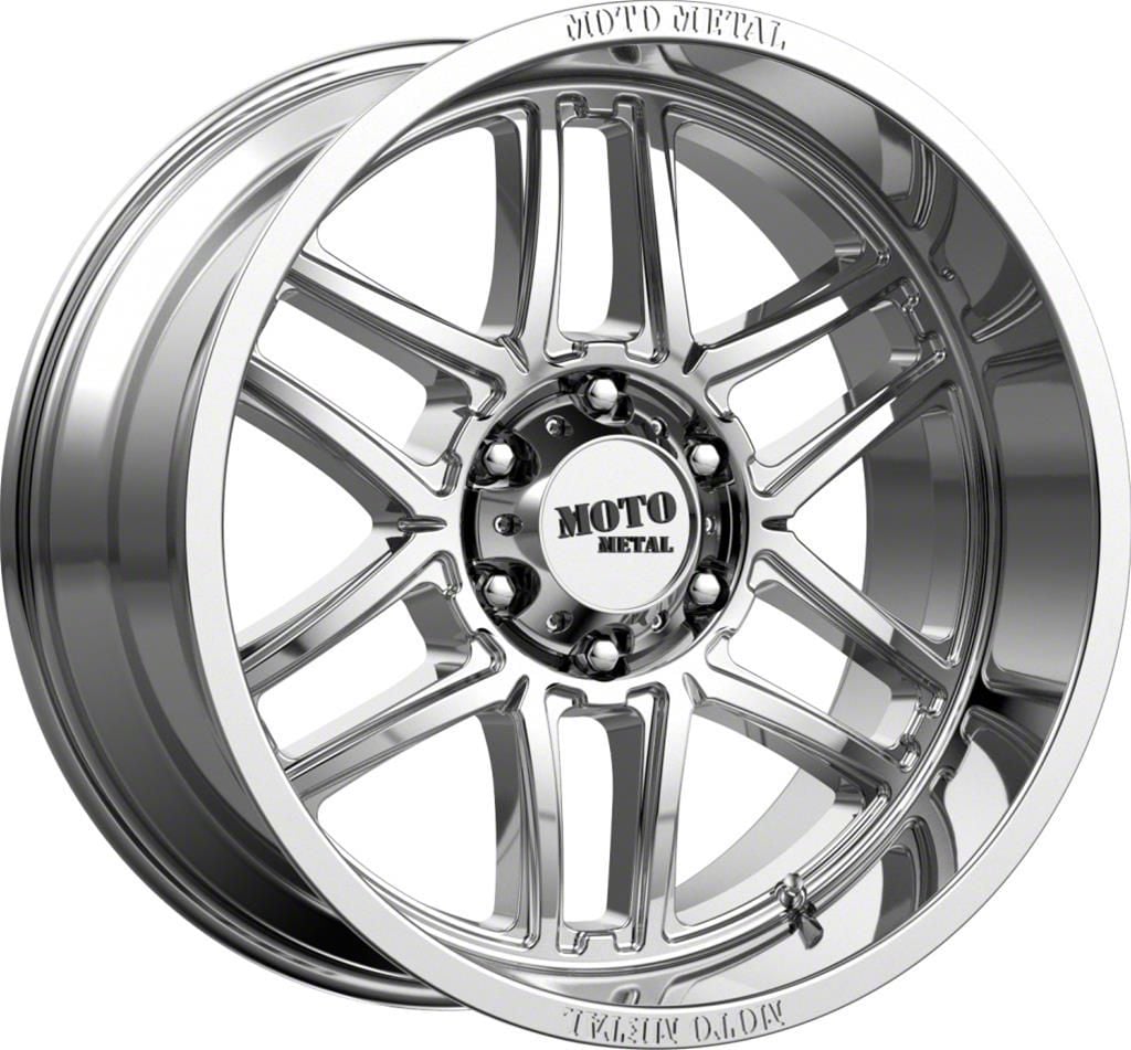 This 20x10 Moto Metal Folsom Chrome 6-Lug Wheel is completed in a high-quality, polished chrome finish that will be the envy of everyone. There's a durable clear coat that protects against driving hazards.