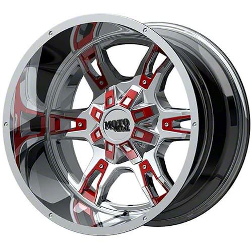 This 22x12 Moto Metal MO969 Chrome with Red and Black Accents 6-Lug Wheel is completed in a high-quality finish that will make your wheel the envy of everyone. There's a durable clear coat to ward off driving hazards.