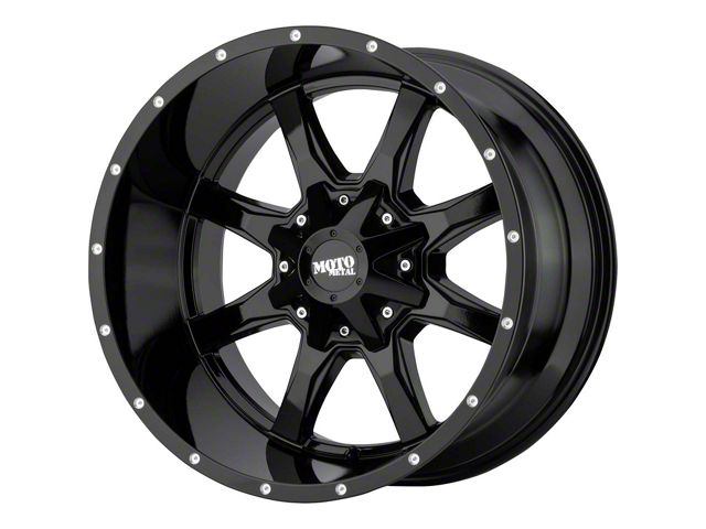 Moto Metal MO970 Gloss Black Milled 8-Lug Wheel; 20x9; 18mm Offset. The Moto Metal MO970 Gloss Black Milled 8-Lug Wheel offers a striking balance of style and refinement. Its unique design accentuates the vehicle's aesthetic, while the premium construction underscores its robust nature. This wheel is a perfect choice for those seeking both elegance and a strong visual statement.