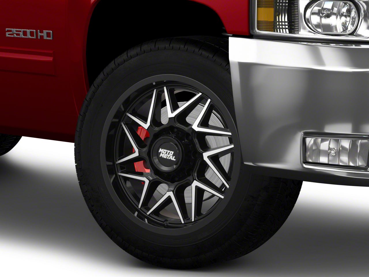 Application. This Moto Metal Turbine Gloss Black with Machined Face 8-Lug Wheel; 20x10; -18mm Offset, with a backspacing of 4.791 Inch, 121.7mm; and bolt pattern of 8 x 165.1mm (8 x 6.5-Inch), provides enhanced alignment and stability. Designed to fit the 2007-2010 Silverado 2500 HD models, it offers precise fitment and is sold individually.