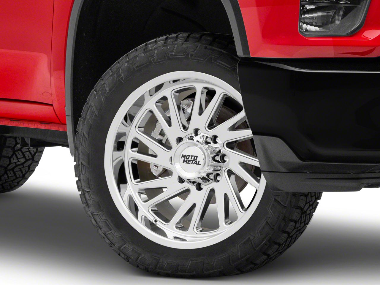 Application. The Moto Metal Combat Chrome 8-Lug Wheel; 22x10; -18mm Offset, with a backspace of 4.791 Inch, 121.7mm and a bolt pattern of 8 x 180mm (8 x 7.08661-Inch), is designed to enhance alignment and stability for a smooth driving experience. Specifically tailored to fit 2020-2026 Silverado 3500 HD SRW models, it ensures a perfect blend of style and functionality. Sold individually, this wheel is an ideal upgrade for your vehicle.