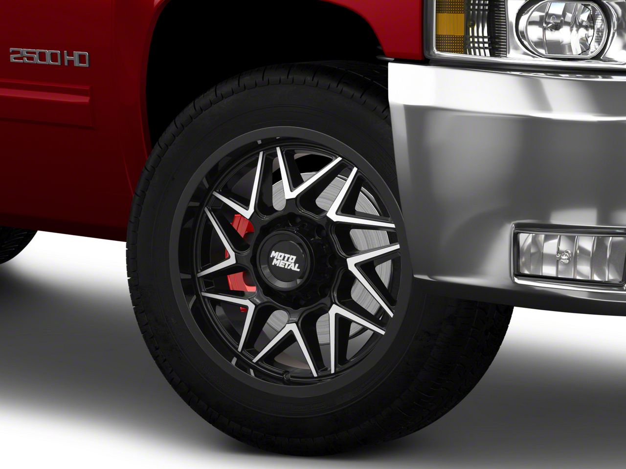 Application. This Moto Metal Turbine Gloss Black with Machined Face 8-Lug Wheel; 20x10; -18mm Offset, with a backspacing of 4.791 Inch, 121.7mm; and bolt pattern of 8 x 165.1mm (8 x 6.5-Inch), provides enhanced alignment and stability. Designed to fit the 2007-2010 Silverado 3500 HD SRW models, it offers precise fitment and is sold individually.