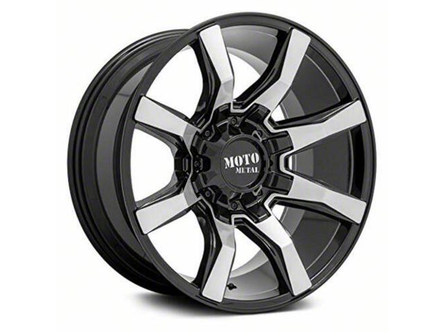 Moto Metal Spider Gloss Black Machined 6-Lug Wheel; 20x10; 12mm Offset offers a sleek and modern design that enhances the visual appeal of any vehicle. Crafted with attention to detail, this wheel merges aesthetic elegance with a robust build, making it a fitting choice for those seeking a blend of style and durability.